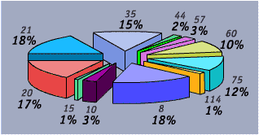 В Москве (диаграмма спроса профнастила представлена на рисунке 4) лидерами продаж являются профили с высотой гофра 8 и 21 мм (по 18 %). Если учесть, что 21-й профнастил используется также как и 20-й, то их можно объединить в одну группу, составляющую 35% рынка. Менеджеры объясняют популярность 20-го и 21-го профнастила универсальностью: эти марки используются как на ограждения и облицовку, так и на кровлю. Основным их отличием является то, что 21-й профнастил выпускается в соответствии с ГОСТ 24045 [11]. Гостированный профиль или нет, не играет особой роли для «частников», но может быть важно для проектировщиков, строителей, многие из которых ориентируются на ГОСТ [11] (особенно при выполнении госзаказа). Вместе с тем, как отмечают менеджеры, на решение «частника» может повлиять более привлекательный вид 20-го профиля и то, что он часто представлен в двух вариантах (узкими или широкими трапециями вверх). Дело в том, что у 21-го все трапеции одинаковые, а у 20-го чередуются трапеции с более узкими и более широкими основаниями, что выглядит красивее. В итоге 20-й и 21-й профили занимают приблизительно одинаковые доли рынка: 17 % и 18 % соответственно.
