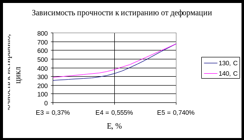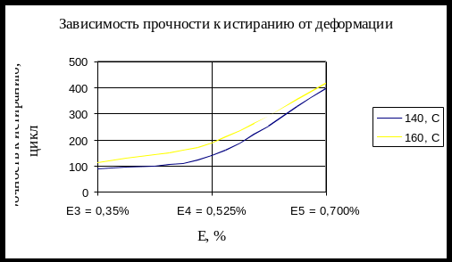 Рис. 4.6. График зависимости прочности к истиранию от деформации