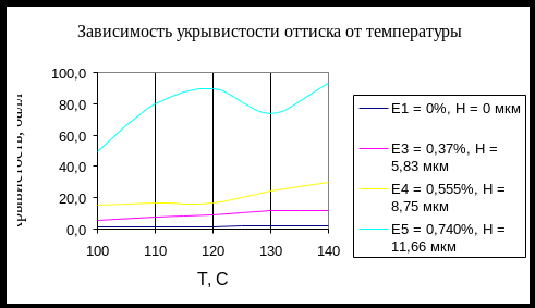 Рис. 4.13. График зависимости укрывистости оттиска от температуры
