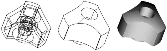Создаваемая конструктором геометрическая модель хранится в памяти компьютера как некоторое математическое описание и отображается на экране в виде пространственного объекта. Объект может отображаться в различном представлении: каркасном, с удалением невидимых линий, полупрозрачном и полутоновом (рис. 4).