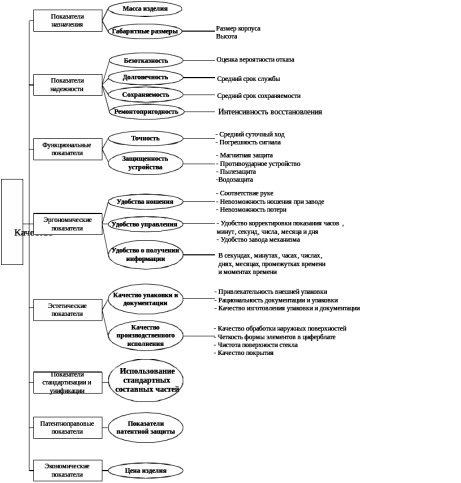 В результате определения показателей качества часов, были представлены те показатели, которые непосредственно характеризуют его в большей степени, но для данного объекта экологические показатели и показатели экономичности рассматриваться не будут, потому что для данной продукции они незначительны, т.е. занимают очень малую степень важности, и в результате мы их исключили.