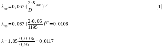 l=137000 м; внутренний диамет D=1,195 м; Кэкв=0,06 мм;