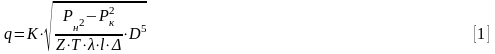 Е – коэффициент гидравлической эффективности принимается равным 0,95, если на газопроводе имеется устройства для периодической очистки внутренней полости трубопроводов;