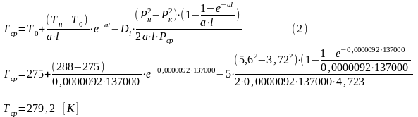 Подставив коэффициент а в выражение (2), найдем среднюю температуру газа на перегоне.