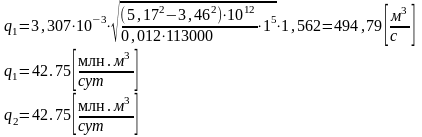 Найдем расход установившийся в обеих нитках после открытия перемычки с помощью коэффициента расхода: