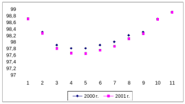 В таблице 2.1 представлены фактические отметки 2000 и 2001 года, а также разница высотных отметок