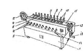 Пробу материала (рис. 5.3) укладывают на поворотный барабан лицевой стороной внутрь под прижимную пластину 10, подъем которой производится с помощью рычага 7. Закрепляют пробу 9 так, чтобы ее края совпадали с Т-образными контурами на пластине1 поворотного барабана. С помощью вилки 14перегибают рабочую часть пробы и опускают лапку предварительного нагружения нажатием на его головку. Лапка удерживает пробу в сложенном состоянии, при этом угол сгиба пробы составляет 180° а площадь, петли пробы равна 1,5 см2. Точно так же заправляют 10 проб.