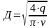 Связь между диаметром труб и протекающим через неё расходом и скоростью выражается формулой: