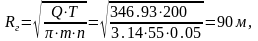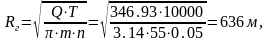 Граница второго пояса 3СО определяется гидродинамическим расчётом исходя из условий, что если за её пределами в водоносный горизонт поступают микробные загрязнения то они не достигнут скважины в течении 200 суток. Радиус второго пояса 3СО в соответствии с рекомендацией на гидродинамическим расчётам для определения границ 2 и 3 поясов зон санитарной охраны подземного источника хозяйственно-питьевого водоснабжения; составленный Н.Н. Пактеным и А.Е. Ордовской определяется по формуле: