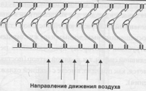 Оребрение трубок воздухоохладителя производится, как правило, пластинчатыми ребрами, что обеспечивает высокую теплоотдачу при низком аэродинамическом сопротивлении теплообменника. Количество рядов трубок и расстояние между ребрами, в зависимости от типоразмера секции, может быть различным.