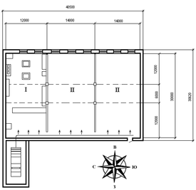 Рис. 18. План установки кондиционирования воздуха для столовой на 100 посадочных мест. I – кухня ; II – торговый зал.