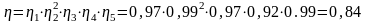 Определим коэффициент полезного действия привода по формуле (1.1):