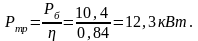где Ртр - требуемая мощность электродвигателя, Ртр =12,38 кВт;