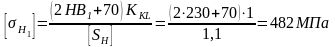 Допускаемое контактное напряжение определим по формуле (2.1):