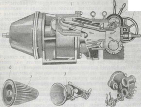 цилиндр для присадки неподвижного диска; 5 — манометр; 6 — указатель перемещения