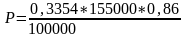 производительность электролизера (Р), при силе тока J = 155А и принятом выходе по току