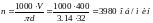 *d) = 1000*191/(3,14*20) = 3043 об/мин; (14)