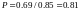 P = 1,1*1*1,0*1,0*0,93 = 0,93;