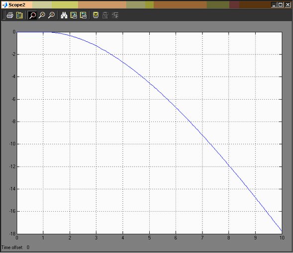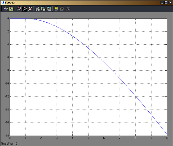 Методом подбора назначаем полюса для новой передаточной функции замкнутого контура. С помощью MATLAB можно найти коэффициенты модального регулятора и получить переходной процесс в динамической модели с регулятором (рис. 5.9).