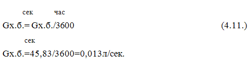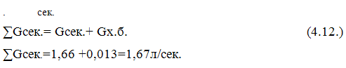 Gх.б.с.=∑q*n*a, л/сек. (4.17.)