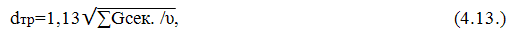Секундный расход воды является основной характеристикой для обоснования диаметров трубопроводов. Диаметр трубопроводов определяем по формуле:
