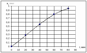По результатам, приведенным в таблице 3.2, можно построить график зависимости xj от времени диффузии.