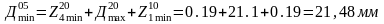 Рассчитываем максимальные значения операционных припусков по методу максимума-минимума: