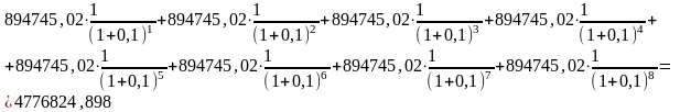 При данной ставке процента на капитал инвестору выгоднее положить деньги на депозитный счет в банк и он за 8 лет получит доход на капитал в размере: Дкап=Кобщ (1+Е)8 – Кобщ=7621,06 тыс. руб.