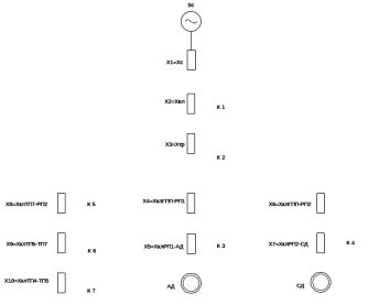 Проверка правильности выбора аппаратов и проводников напряжением 6 - 35 кВ производится по току трехфазного короткого замыкания (к.з.), а напряжением 110 кВ и выше - по току трехфазного или однофазного к.з. Расчет токов к.з. производят в основных коммутационных узлах схемы электроснабжения. Для определения наибольшего возможного тока к.з. в каждом узле следует считать включенными все генераторы в системе, все трансформаторы и линии электропередачи (ЛЭП) подстанции.