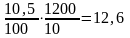 | 9 | 1200,00 | 10,5 | 0,099 | 1,24 | 0,075 | 2 | 0,040 | 0,506 |