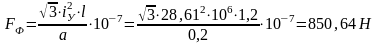 Усилие между фазами при протекании тока к.з.: