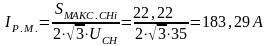 Iр.ф. = 2Iр.м = 366,58 А, т.е. условие Iр.ф. Iдл.доп выполняется.