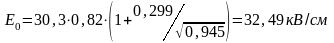 Е0 – критическая начальная напряженность поля, при которой возникает разряд в виде короны, кВ/см.