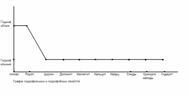 Сопоставив все известные данные по физическим, химическим, механическим и другим свойствам минералов составляем сводную таблицу и строим графики, необходимые для обоснования схемы фабрики: