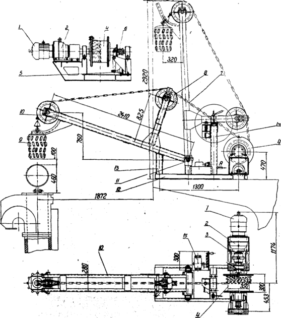 Рис.5. Загальний вид механізму відкривання-закривання затворів вугільної вежа конструкція КБ Коксохіммаша