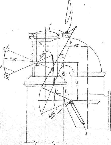 Рис.3. Привід і важільна система люкознімальної машини.
