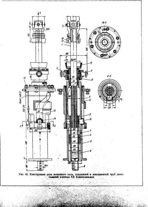 Рис.4. Конструкція вузла вала, рухомої і нерухомої труб люкознімальної машини.