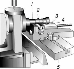 1 - облямовування; 2 - фреза; 3 - лещата; 4 - деталь; 5 - стіл.