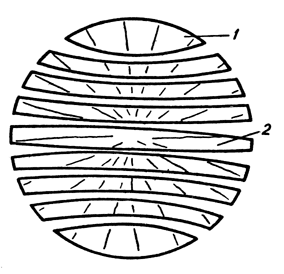 В розпилювального матеріалу при висиханні спостерігаються прогини і опуклості, тобто відбувається його викривлення. В центрової дошки викривлення буде ледве помітним, оскільки тверда ядерна деревина усихає значно менше заболоні.