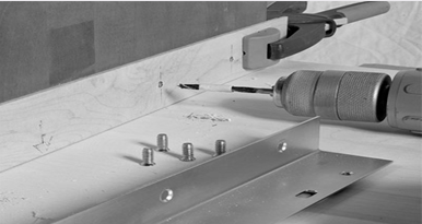 7. В точках розмітки свердлять отвори, після чого до деталей ящиків пригвинчують металеву фурнітуру. Ящики висуватимуться і засуватимуться, ковзаючи по тих, що направляють, тому в кріпильну конструкцію входять обмежувачі руху.