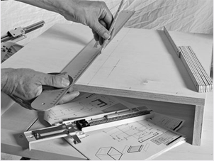 6. Деталі висувних ящиків для барной стійки також вирізують з меблевих щитів. Місця майбутнього кріплення металевої фурнітури розмічають олівцем, заздалегідь визначивши положення кожного шурупа.