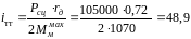 Общее передаточное отношение тандемной тележки определим из условия реализации максимальной силы тяги.