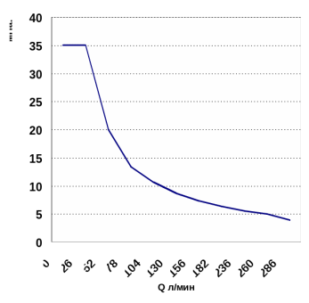 Рис.3.1. График изменения давления в гидросистеме от расхода