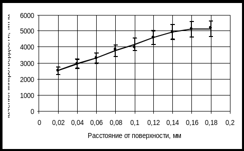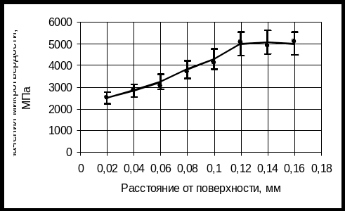 | Значение микротвердости, МПа | 4248 | 4746 | 4914 | 4929 | 5384 |