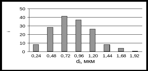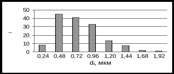 Рис. 18. Гистограмма распределения размеров карбидных включений для образца, закаленного на температуру 1 050оС