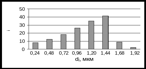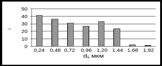 | Размер включения di, мкм | Количество включений данного размера ni | Относительная доля включения данного размера, % |