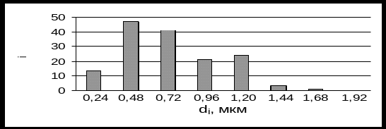 Рис. 19. Гистограмма распределения размеров карбидных включений для образца, закаленного на температуру 1 070оС