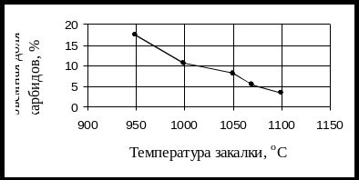 Рис. 21. Зависимость количества карбидной фазы от температуры нагрева под закалку