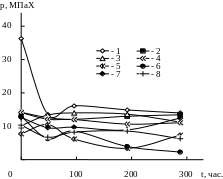 | № | Состав,% | σpi, Мпа исх. | σpi, Мпа 48 ч. | σpi, Мпа 96 ч. | σpi, Мпа 192 ч. | σpi, Мпа 288 ч. | |