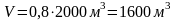 Свободный объем помещения примем равным 80% геометрического объема помещения: